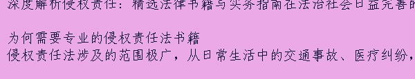 在法治社会日益完善的今天,侵权责任作为民法体系中的核心组成部分,直接关系到公民权益的保护与社会秩序的维护。对于法律从业者、学生以及普通公众而言,选择一本高质量的侵权责任法律书籍至关重要。这类书籍不仅能够帮助读者系统掌握法律责任的认定逻辑,还能在复杂案件中提供清晰的解题思路。